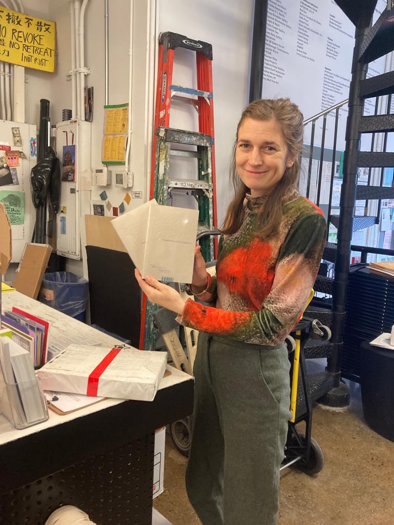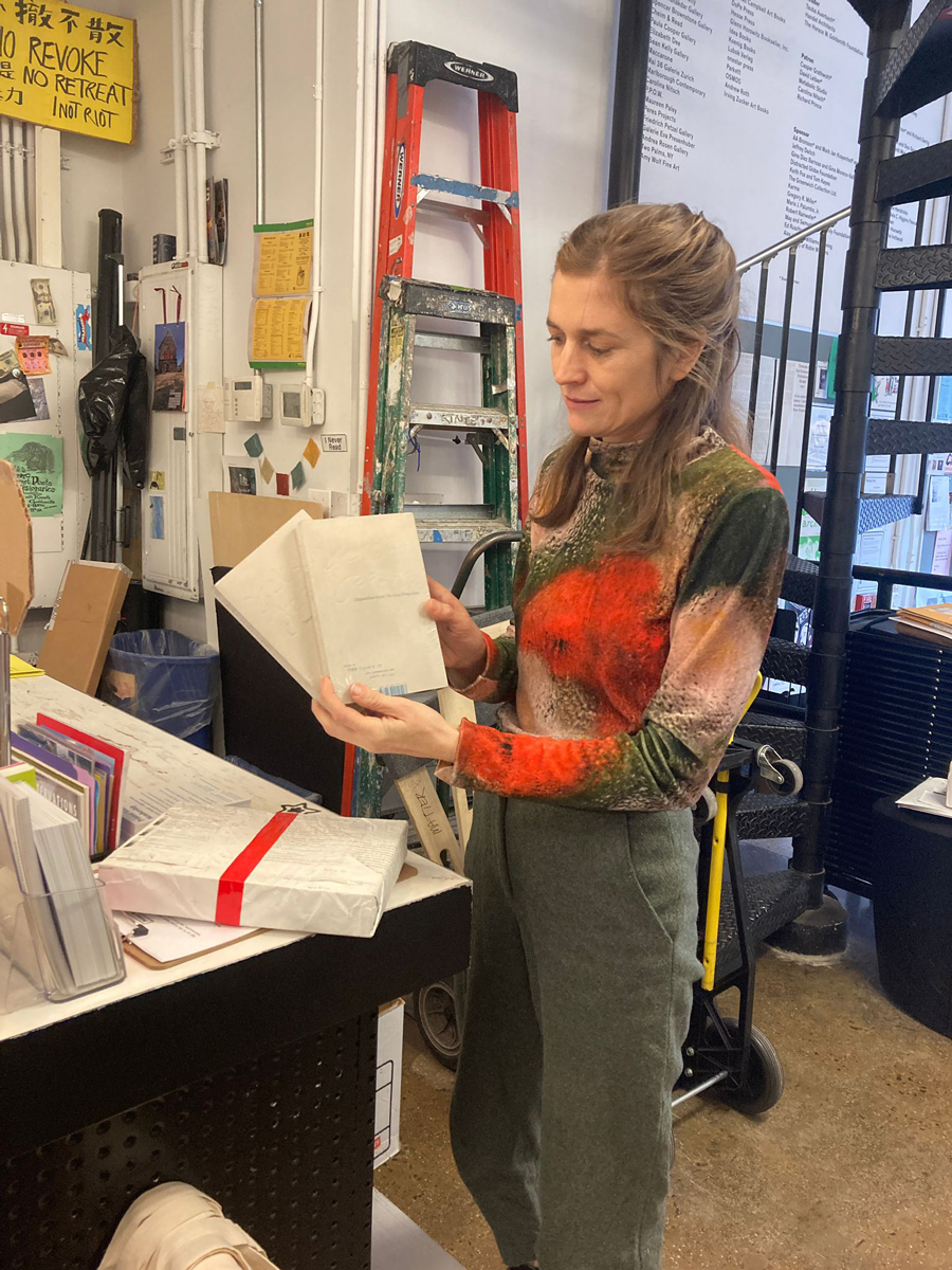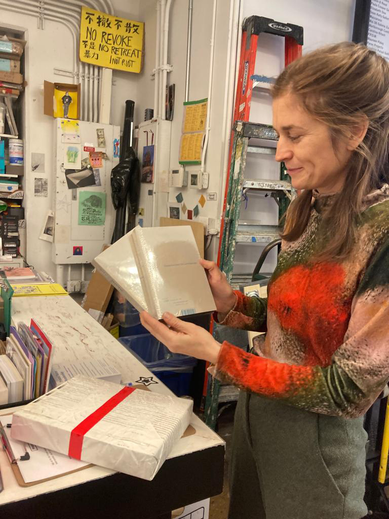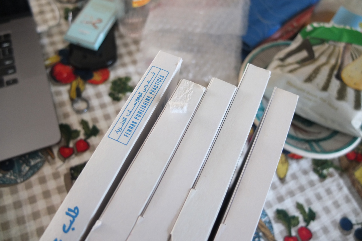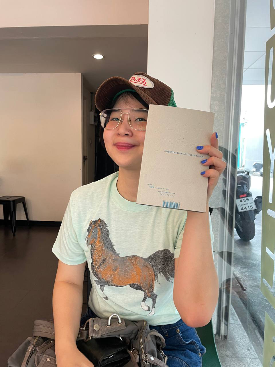 2023-04-18,13:20通過2023年3月23日一次Zoom會議確認後,慢遞員易拎小姐帶了27公斤lumbung Kios產品回香港做展銷場小販在BOOKED香港藝術書展擺攤