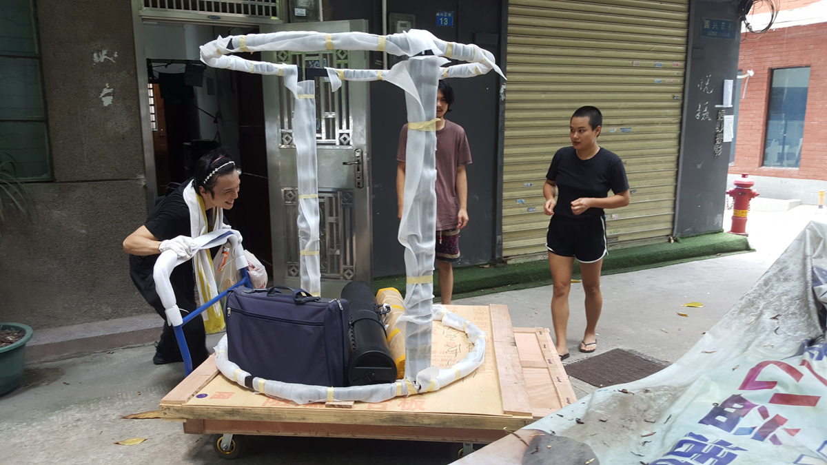 The receiver in Suzhou gets in touch with LIGHT LOGISTICS with news that a friend of hers is moving to Guangzhou and can help courier her dispatch; after several missed connections due to busy work schedules and different sleeping patterns, new courier Mr. ZHANG and PORTABLE finally make an appointment to meet at the Guangzhou space Soeng Joeng Toi during their weekly group martial arts practice