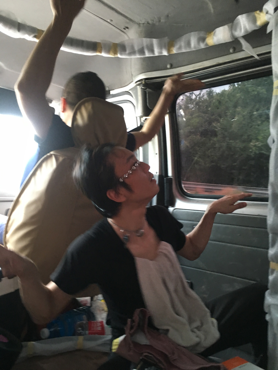 從西邊Phra Nakhon走了一個小時多,經由唐人街到了一個叫『快速婆婆』的空間找我離開香港前一個小時下單的《闖》2讀者,恰好展銷場的一個合作者『浪潮』小組成員也在場可以順便送她一本《目錄》;原來大家都來了這空間的屋頂上燒烤和唱戶外K,再次爽