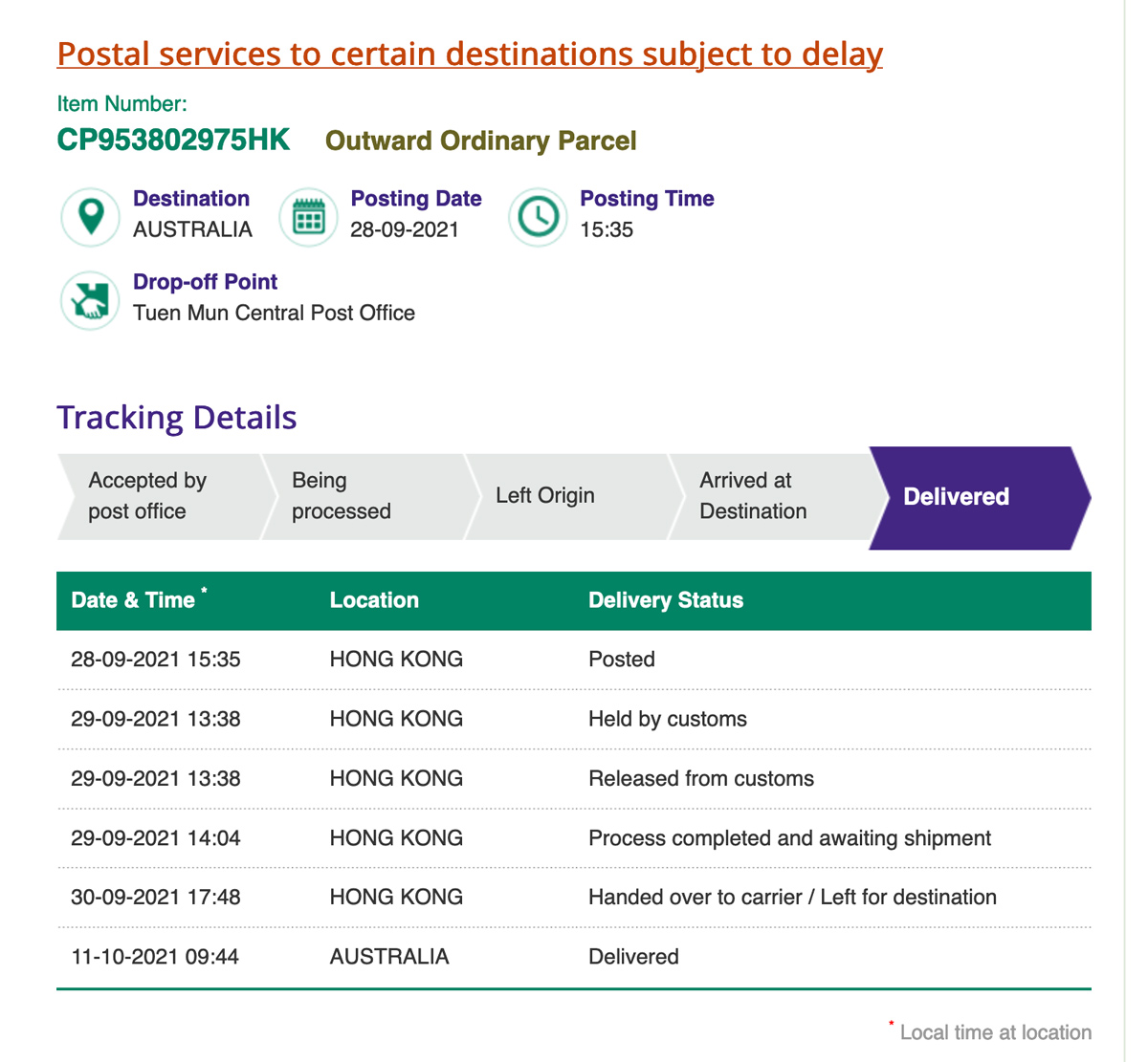 FROM THE TUEN MUN RELAY CENTRE:Dear all, yes, if it's okay for the sender to pay for the shipping costs, would be really fine by us as well, since we've had to make a lot of concessions during the pandemic period already. If at all possible, can the receiver send us a line and maybe an image when you've received the package so that we can document the closing of this route, which is now our SLOWEST ROUTE EVER! Congratulations, both! :) Warmest greetings from Hong Kong, PORTABLE