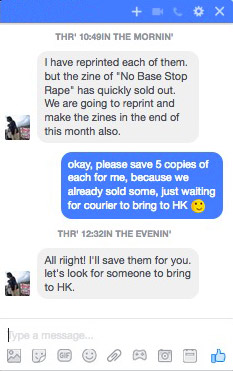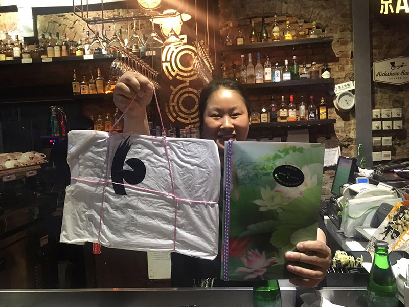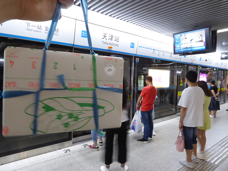 Long after Ms. QIAN places her order on the Display Distribute website (mid-May), Display Distribute is still looking for a courier to Suzhou. While participating at the abC Art Book Fair in Beijing a call for Suzhou couriers is announced, and Ms. pitpat responds to the call. Only a few minutes after sending her off with dispatch HQL-241, receiver Ms. QIAN informs that she has also arrived in Beijing and would be able to pick up her order at the book fair the next day. Unfortunately, courier Ms. pitpat had already left the premises, and it was not until a week later after both had returned to Suzhou that the handover was made.